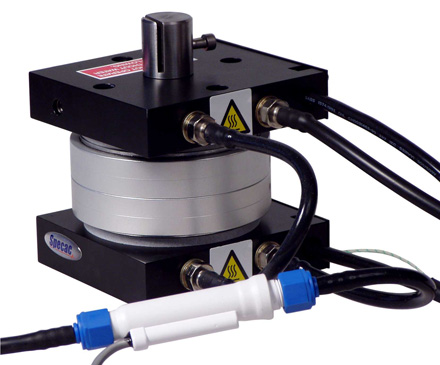 De verwarmde platen zijn ontworpen voor verwarmbare persoppervlakken die compatibel zijn met alle hydraulische persen van Specac (behalve de 40T Autotouch-pers). De platen zijn eenvoudig in enkele seconden in de pers te installeren en hebben een groot oppervlak, met volledige CE-veiligheidsgoedkeuring. Ze zijn uitgerust met een permanent thermokoppel dat de temperatuur dicht bij het persoppervlak controleert met een stabiliteit van ±1°C. Let op: De oppervlakken van de platen die in contact komen met de pers moeten watergekoeld zijn om oververhitting en warmteoverdracht naar de pers zelf te voorkomen.